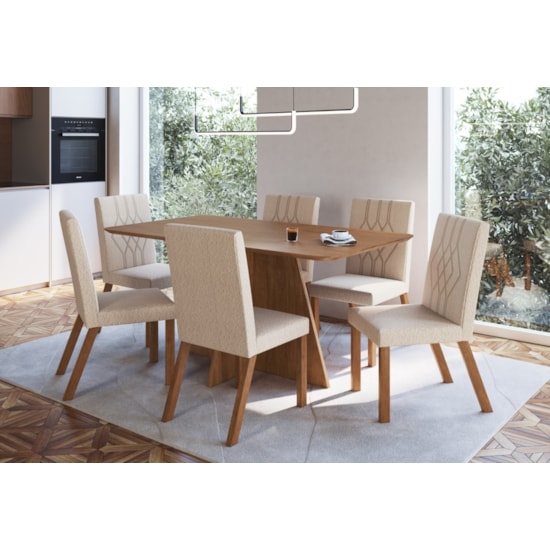 Cadeira Estofada Mesa De Jantar Gaia Canela Boucle Creme