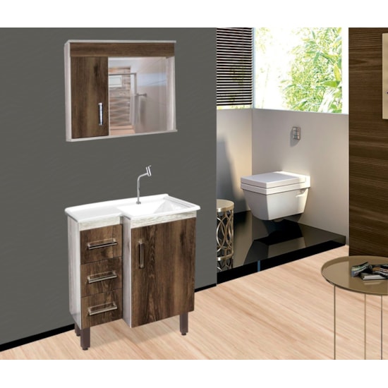 Conjunto Banheiro Atenas 60Cm Carvalho/Imbuia