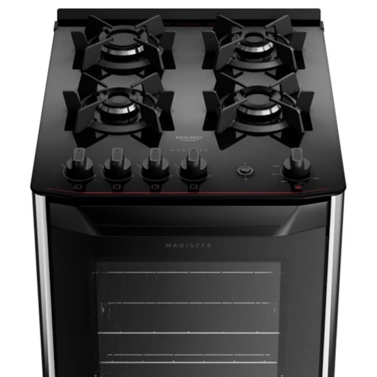O fogão Magister conta com 4 bocas, tem acendimento automático, um queimadores família e um mega chama que vão dar aquela ajudinha na hora de preparar receitas para toda a família. Isso sem contar na mesa de vidro temperado e no forno com duas prateleiras. Ideal para você preparar duas receitas ao mesmo tempo. O forno possui um mega visor, que permite enxergar tudo o que está dentro, excelente capacidade de 60 litros, acabamento limpa fácil, iluminação interna, 1 grade auto deslizante e 1 deslizante e porta com vidro duplo, que preserva o calor.