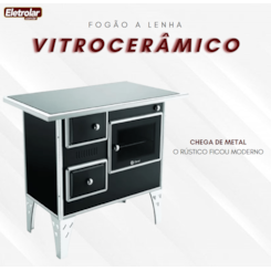 Nos dias de hoje, o fogão a lenha veio para dar aquele ar da casa de campo em sua cozinha, misturando o design moderno com o retrô deixando sua cozinha mais linda, sofisticada e aconchegante. Assim como o fogão tradicional ele tem a mesma finalidade, mas com uma chapa de vidro de alta tecnologia americana, altamente resistente e de fácil limpeza. Suas principais caracteristas são: Produto mais alto e mais robusto que os da concorrência (semi-gabinete), melhor ergonomia já ficando na altura ideal para o uso, pés e guarnições em aço inox, melhor acabamento e durabilidade. Revestimento interno com tijolos e cimento refratário permitindo economia e rendimento com melhor retenção de calor e um design moderno inovador e com acabamento diferenciado.