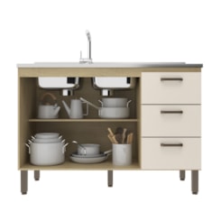 | Gavetas: | 3 gavetas. Em placa de MDP - BP Branco 15mm. Fundo da gaveta em Duratree 3mm de alta resistência, com pintura interna em tinta UV padrão semibrilho. |