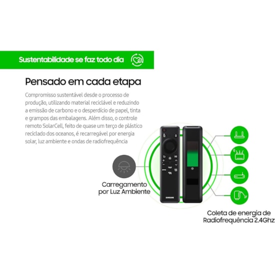 | Conectividade: | Wi-Fi, Bluetooth, Anynet+ (HDMI-CEC), Transmissão digital: ISDB-T, Sintonizador analógico: Sim (Trinorma), Data Broadcasting: GINGA |